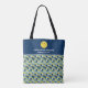 Super cute double-sided tote bag for your pickleball paddle and gear. Design features a yellow pickleball, two lines of custom text set above a sporty blue, green yellow abstract arrow pattern. Get matching totes for your club, team or pickleball trip . . . Makes a nice gift for the pickleball player in your life.