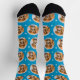 Bright and cheerful, these custom socks feature a single dog photo in a round frame on a vivid blue background with white paw prints. Upload your favorite dog photo to create a personalized gift for any pet-obsessed friend or family member. Great for birthdays, holidays, or just because.