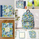 A fun blue green yellow seamless pattern with different dog breeds Water Bottle. Personalize it with a name to make a fun gift for all dog lovers.