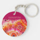Fun Bold Orange Hot Pink Batik Circles Art Pattern Keychain