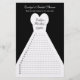 Looking for a fun bridal shower word game? Here it is! This bridal shower word game appears on a white bridal gown on a black background. Party guests are asked to make as many words as they can from the name of the bride and groom and the word wedding. Numbers 1 - 20 appear on the gown ready for the party guests to fill in the words. In addition, you can customize the top with the name of the bride. This is a really easy and fun bridal shower word game. Copyright henishouseofpaper