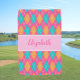 Fun Bright pink preppy argyle custom name ladies Golf Towel