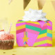 Brightly striped Christmas trees layered on a fuchsia pink background decorate this unique Christmas gift wrap. Make a fun vibrant splash with this bold geometric pattern wrapping paper. Modern. Maximal. Bold. Bright and Merry. This fun Christmas gift wrap blends tradition with modern maximalism. A unique vibrant style for your Christmas and Holiday gifts with shades of pink, orange, green, red, yellow, and turquoise.
