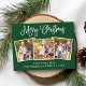Modern Fun Calligraphy Script Merry Christmas 3 Photo Holiday Postcard - Green