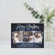 Modern Fun Calligraphy Script Merry Christmas 3 Photo Holiday Postcard - Rustic Country Blue Wood