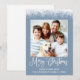 Fun Calligraphy Christmas Snow Topped Photo Blue Holiday Card