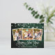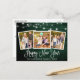 Modern Fun Calligraphy Script 3 Photo Family Happy New Year Postcard with String Lights - Rustic Green Country Wood