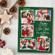 Modern Fun Calligraphy Script Happy New Year 5 Photo Collage with Craft Tape Holiday Postcard. Green Background