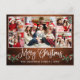 Modern Fun Calligraphy Script 5 Photo Family Photo Collage Merry Christmas Postcard includes Watercolor Christmas Holly Berries - Rustic Country Wood