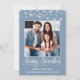 Modern Fun Calligraphy Script Happy Hanukkah Family Photo Holiday Card - Dusty Blue with String Lights