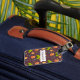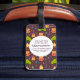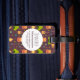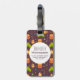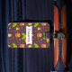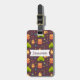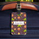A personalized luggage tag designed with a cute camping pattern. Camping themed items such as an orange campfire, a green tent, an acoustic guitar and other nature elements like trees, leaves, and also a backpack and shovel and canteen. Cool outdoorsy pattern.