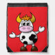 This is a fun cartoon cow drawstring backpack that will certainly make you stand out out in the crowd. The cow is standing on two legs with her arms out wide as though to say 'how you doing?'.