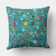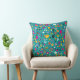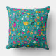 fun cartoon pattern teal throw pillow
