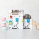 Transform your gift giving with this unique wrapping paper featuring a whimsical mid-century modern illustration of retro robot doodles. The playful automation pattern and hand-drawn electronic objects create a vibrant blue and red geometric art display that is perfect for birthdays or tech themed celebrations. Your presents will stand out with these cute characters and minimalist cartoon cyborgs that bring a touch of sci-fi charm to any occasion. This high quality paper highlights digital lifestyle graphics and whimsical office machines for a truly creative presentation.