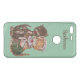 This Google Pixel phone case has a fun cat couple. The female is yellow and white striped and the male is brown. The female is giving the male rats from her green basket on a mint green background. Customize your name with the template.