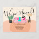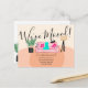 We have moved! A cute and fun quirky illustration of a living room with a pink sofa, pillow, lamp, house plant and a cat, with a teal trow blanket and a knitting kit moving announcement and an elegant and modern script calligraphy typography. The wall floor and rug colors are all fully editable and movable!