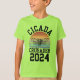 Fun CICADA CRUSADER 2024 Kids T-Shirt with CUSTOMIZABLE TEXT, featuring bold typography, vintage retro sunset and circada outline to celebrate the circada double emergence invasion on the East Coast of the United States in summer 2024. The bold typography says CICADA CRUSADER 2024. The 2024 is CUSTOMIZABLE so you can update it to 2028 or any other text. Get ready for the great cicada emergence of Broods XIII and XIX. Ideal for aspiring and future entomologists everywhere! Buy matching shirts for the family.