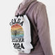 Fun CICADA CRUSADER 2024 Personalized Drawstring bag with CUSTOMIZABLE TEXT, featuring bold typography, vintage retro sunset and cicada outline to celebrate the cicada double emergence invasion on the East Coast of the United States in summer 2024. The bold typography says CICADA CRUSADER 2024. The 2024 is CUSTOMIZABLE so you can update it to 2028 or any other text. You can also PERSONALIZE this Cicada Drawstring Bag by ADDING YOUR NAME at the bottom. Get ready for the great cicada emergence of Broods XIII and XIX. Ideal for aspiring and future entomologists everywhere! Matching gifts available.