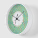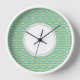 Fun Circular Aqua White Yellow Geometric Pattern Clock