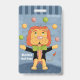 Fun blue student hall pass featuring a circus juggler lion on the front and a pattern on the back . Perfect for elementary school . It can be personalized with the teacher's name and type of pass (library , office , bathroom , etc) . Choose the type of attachment you want (none , metal clip -as seen here - , or lanyard ) .
