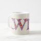 A fun Coffee Mug with the Welsh word 'cwtch', meaning 'cuddle' or 'hug', in a Celtic script, filled with a pretty floral pattern on a linen-look background.