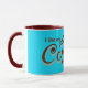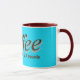 Fun brown coffee quote text on white and aqua pin dot pattern.