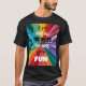 My 11 yo wore adult XL (5’7” 165#). The 8yo is small framed. She wore adult small and tied it in the back. Grandma wore adult large with long sleeve shirt underneath. Tall girl adult medium. Dark haired male adult large. Good quality dark Heather gray, Gildan brand shirt. -it was next up from basic choice and cost about $20 per shirt. Not too thick or thin. Washed and dried well, no major shrinkage. Not see-through. Can wear a bra under it fine. Screen print is just as shown and well done, front and back.