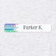 Fun and colorful back to school labels personalized with child's name next to a row of colored pencils, some with patterns, in soft rainbow colors. Kindergarten labels with colorful pencils in soft shades of the rainbow, with some patterns like stripes, dots, and stars and your kid's name in a hand-writing font. Label your children's clothes with these cute colored pencil themed labels with custom pencil gray text in a hand-writing font where you can add their name.