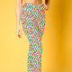 The dainty interlinked rosette design at the waist is truly unique. The poly-spandex makes for a nice fit and available in sizes 0-16. The printing is vibrant and eye-catching.