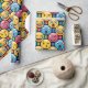 This high-energy emoji faces kids' wrapping paper features a seamless, bold pattern of popular expressions—including laughing-crying, winking, and surprised faces— with vibrant yellows, blues, and pinks.