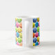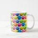 A fun colorful coffee cup for pickleball lovers. This design has a colorful assortment of pickleballs in colors or fuchsia, yellow, blue, orange and green.