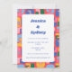 Fun Colorful Retro Abstract Art Red Blue Wedding Invitation