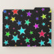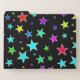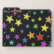 This fun, multicolored file folders design features a pattern of star shapes of various sizes and colored a variety of colors on a black background. [~Z0000263]