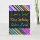 This fun, colorful and whimsical birthday-themed greeting card design features a warm birthday wish like "Have a Great 42nd Birthday, Custom-Name!" on the front. The name on the front can be personalized. The top and bottom of the front feature vibrant, multicolored stripes. The inside features a birthday message that can be personalized. A greeting card like this could be a fun way to deliver birthday wishes to somebody who is celebrating their forty second birthday. [~Z0000269]