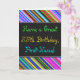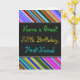This fun, colorful and whimsical birthday-themed greeting card design features a warm birthday wish like "Have a Great 55th Birthday, First-Name!" on the front. The name on the front can be customized. The top and bottom of the front feature vibrant, multicolored stripes. The inside features a birthday message that can be customized. A greeting card like this could be a fun way to deliver birthday wishes to somebody who is celebrating their fifty fifth birthday. [~Z0000269]