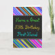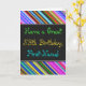 This fun, colorful and whimsical birthday-themed greeting card design features a warm birthday wish like "Have a Great 59th Birthday, First-Name!" on the front. The name on the front can be personalized. There are also multicolored stripes at the top and bottom of the front. The inside features a customizable birthday message. A greeting card like this could be a fun way to deliver birthday wishes to somebody who is celebrating their fifty ninth birthday. [~Z0000269]