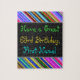 This fun, colorful and whimsical birthday themed puzzle design features a warm birthday wish like "Have a Great 63rd Birthday, First-Name!". The name can be personalized. The top and bottom feature a vibrant, multicolored stripe pattern. A puzzle like this could be a fun way to deliver birthday wishes to somebody who is celebrating their sixty third birthday. [~Z0000268]