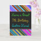 This fun, colorful and whimsical birthday-themed greeting card design features a warm birthday wish like "Have a Great 7th Birthday, Custom-Name!" on the front. The name on the front can be personalized. The top and bottom of the front feature a vibrant, multicolored stripe pattern. The inside features a birthday message that can be customized. A greeting card like this could be a fun way to deliver birthday wishes to somebody who is celebrating their seventh birthday. [~Z0000269]