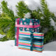 Make a merry and bright statement with happy thoughts and a positive outlook this Christmas season with our fun, colorful and sparkling gnomes Christmas collection. Capture the joy of the season with a funny non-traditional Christmas twist. Our Bright cheery colors with neon pinks, bright teals, and fun faux glitter accents in bright colors are perfect for all ages. Design features three complementing patterns, the first wrapping paper sheet features a fun faux glitter stripe wrapping paper design. The second wrapping paper sheet features xoxo with fun pink lips and the third wrapping paper features our fun and silly gnome characters each wearing color outfits with faux glitter accents. "no peeking, Fa la la, Ho Ho" messages are displayed in the gnomes white beards, fun presents and ornaments are added to this fun gnome pattern. Hand-drawn original artwork by Moodthology Papery.