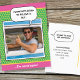 Announcing your new home? Create a fun comic book style moving announcement postcard! Personalize it with a photo, message and change of address details. This editable template is designed for a house move, but the text can be customized for any occasion. It features retro fonts, bold lines, bright colors, comic dots, and speech bubbles. A casual and friendly design, perfect for sharing your new location! Printed colors: pink, green, yellow and white.