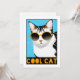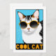 This playful and simple cartoon illustration features a cat with the text "COOL CAT" prominently displayed in bold, orange letters at the bottom. Set against a blue background, the cat's ears are clearly visible at the top of the image, though the central portion of the face is partially blurred. The bright and fun design captures a whimsical and lighthearted vibe, perfect for fans of cheerful and quirky art.