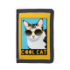 This playful and simple cartoon illustration features a cat with the text "COOL CAT" prominently displayed in bold, orange letters at the bottom. Set against a blue background, the cat's ears are clearly visible at the top of the image, though the central portion of the face is partially blurred. The bright and fun design captures a whimsical and lighthearted vibe, perfect for fans of cheerful and quirky art.