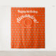 This cute girly tapestry features a vibrant orange red background adorned with a playful, colorful bow pattern all over, creating a fun and festive atmosphere. In the center, there's a customizable space where you can add the birthday girl's photo to make it extra special for the celebration. The design is complemented by modern, stylish white typography that says "Happy Birthday" followed by the birthday girl's name. Below the photo, the date is displayed in a simple, classic script, adding a personal touch. It’s the perfect decoration to welcome guests and set the tone for a stylish, memorable birthday party!