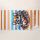 Funny illustration of corgi dog that is playing poker on a beach is featured on this personalized beach towel in vintage style with the striped pattern. The template makes it easy to type your family name, year or other text.