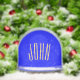 This festive winter holiday design features fun tall curved text ready to personalize against bright royal blue background.
