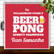 Show off your skills in style with this custom "champion" beer pong table, personalized just for you. Further customize this table by choosing "customize" and changing the color of the background for each side.