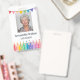 Vertical teacher ID badge personalized with photo, name, grade with colored pencils in fun colors and a printed bunting flag banner in matching colors with patterned details, like stripes, dots, and stars. Colorful teacher ID badge with custom text and ID photo. Personalized kindergarten teacher ID with a fun design with colored pencils in the colors of the rainbow.