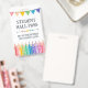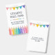 Vertical student hall pass badge personalized with purpose and classroom and teacher's name with colored pencils in fun colors and a printed bunting flag banner in matching colors with patterned details, like stripes, dots, and stars. Colorful student hall pass with custom text in a fitting pencil gray hand-writing fonts. Personalized kindergarten student hall pass with a fun design with colored pencils in the colors of the rainbow.