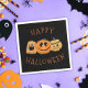 These fun Halloween party paper napkins feature a black background with a group of cute orange pumpkins. The greeting says "HAPPY HALLOWEEN" but is editable. This is the perfect design for a fun Halloween party!