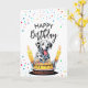 A Dalmatian blowing out candles on a birthday cake, ideal for a birthday-themed illustration.